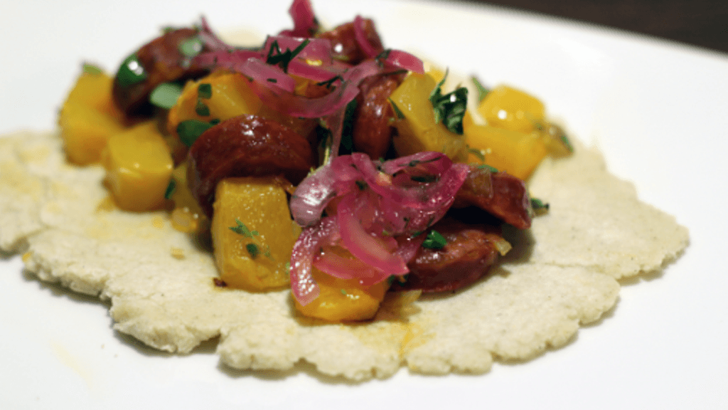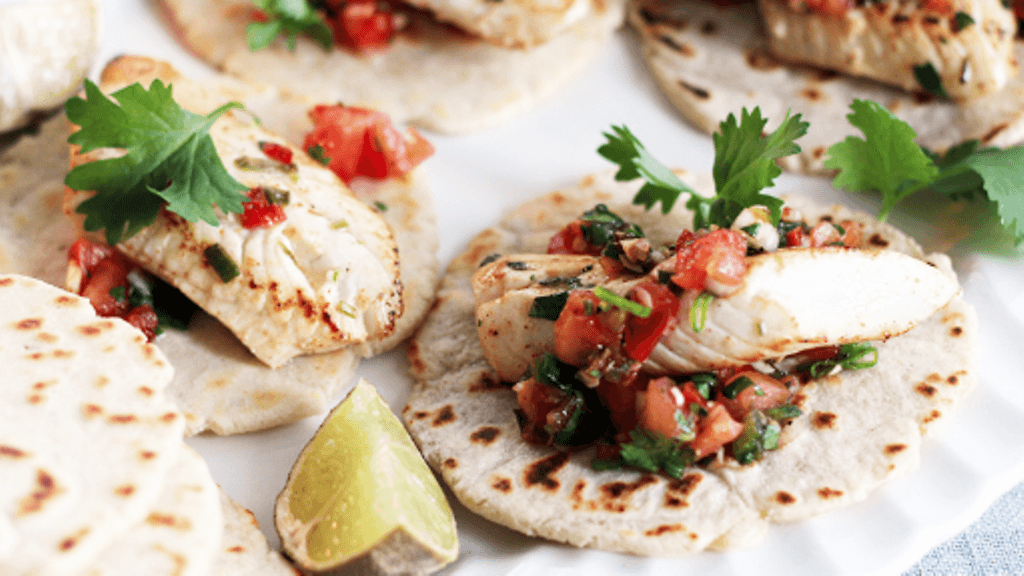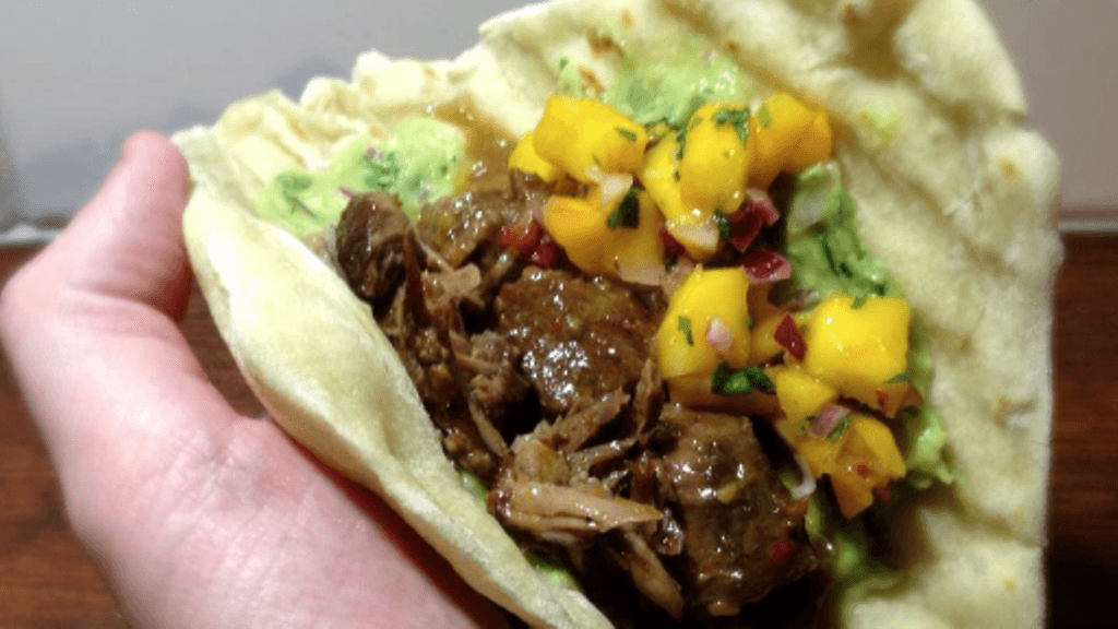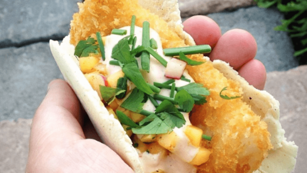 Baja Fish Taco eli kalataco chilimajoneesilla ja mango-retiisisalsalla