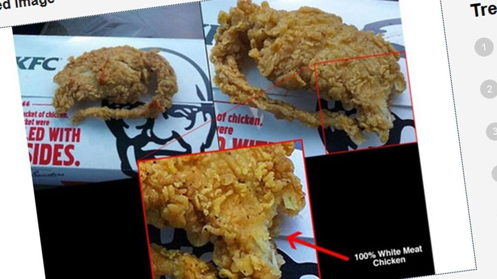 Kalifornialaisessa Kentucky Fried Chicken -pikaruokaravintolassa nugetteja syönyt mies löysi annoksestaan friteeratun lihanpalasen, joka muistutti muodoltaan selvästi rottaa. Mies ilmoitti asiasta ravintolan henkilökunnalle, ja asiaa ryhdyttiin tutkimaan.