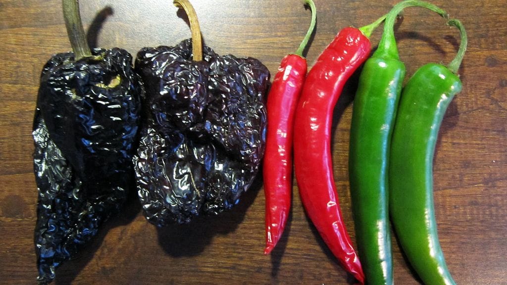 Voit käyttää moleen erilaisia chilejä, mutta ei välttämättä niitä kaikkein tulisimpia. Miedoimmatkin saattavat tehdä mausta tylsän, joten tavalliset markettien punaiset ja vihreät chilit toimivat hyvin. Itselle sattui kohdalle mustia ancho-chilejä, joista koko idea ruokaan lähti.