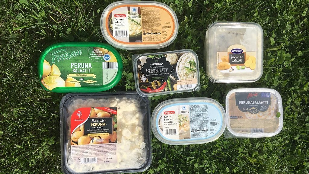 Viiden hengen Makuja.fi -sivuston raati innostui arvioimaan kauppojen valmiit perunasalaatit. Raati maistoi sokkona yhteensä seitsemän perunasalaattia ja antoi niille numerot asteikolla 1–10.