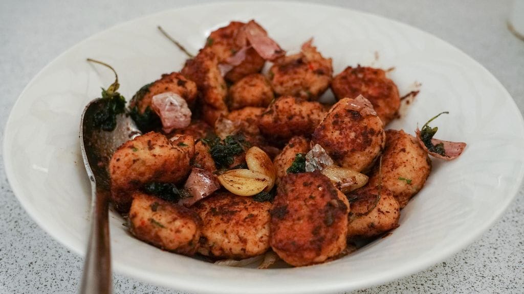 – Noin 400 grammaa broiskun jauhelihaa, yksi kananmuna, desi kermaa, Maustetaan chilillä, valkosipulilla ja inkiväärillä, Aihinen ohjeisti.
