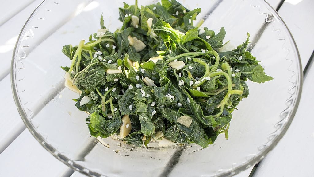 Vuohenputki on vallannut meidän puutarhassa pari paikkaa. Välillä ne tulee ajettua sileäksi ruohonleikkurilla, välillä nypittyä esim. salaattiin. Bap-kirjassa oli yllättäen korealainen lisuke vuohenputkesta. Marjapuskan alusta pääsi kätevästi eroon ”rikkaruohoista” ja liha sai oivan höysteen. Tämän tekee 5 minuutissa, josta valtaosa kuluu nopeaan ryöppäämiseen ja vuohenputken kuivaksi puristamiseen. Erittäin helppo ja nopea sekä loistavan mielenkiintoinen lisä aasialaisessa kattauksessa sekä pelkästään vaikka grillattua lihaa kruunaamaan.