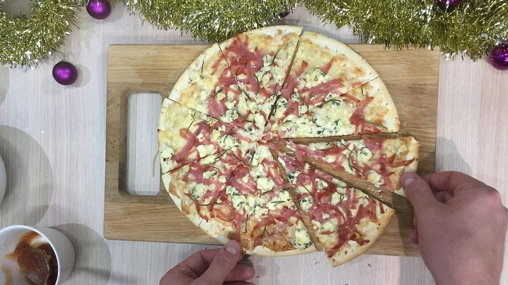 Tuunasimme perinteisen pizzan jouluisaksi versioksi. Katso videolta, miten joulupizza syntyy nopeasti herkullisista raaka-aineista.