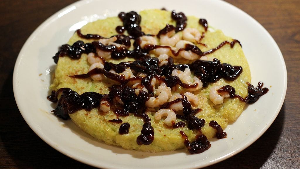 Okonomiyaki on tavallaan japanilainen munakas, mutta jotenkin se tuo enemmän mieleen pizzan. Näin, vaikka raaka-aineet täysin erilaiset ovatkin. Käytännössä se on vehnäjauhoista, kananmunista ja silputusta kaalista tehty paistos, jonka päälle voi kasata mitä huvittaa, ainakin kastiketta. Japanissa mukaan laitetaan myös raastettua jamssia, mutta itse olen toistaiseksi pärjännyt ilmankin. Okonomiyaki-nimi tarkoittaa suomeksi ”se mitä haluat kypsennettynä” ja se kuvaa ruokaa mainiosti. Ei ole niin tarkkaa.