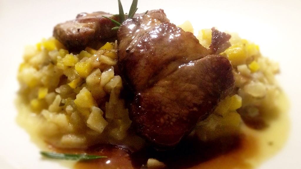 Uhosin vuodenvaihteen ruokalupauksissani tekeväni tänä vuonna elämäni parhaan aterian. Lupaus lunastettu. Tädin kuuskymppisillä tuli tehtyä niin hyväksikoettuja kuin kokeiluluontoisiakin herkkuja. Kaikki onneksi onnistuivat. Ainoana liharuokana toimi yön yli tummassa lagerissa hautunut kassler, keitinliemestä kokoonkeitetyssä kastikkeessa riisittömän juuresrisoton kera. Idea tähän tuli Sasu Laukkosen kokkaamalta illalliselta. Toinen illan lainaus oli jälkkärinä toiminut spelttilakritsijäätelö.