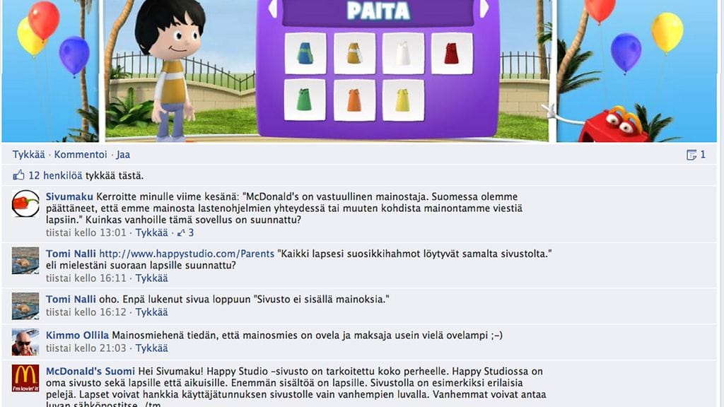 McDonald's kiistää kohdentavansa mainontansa viestiä lapsiin. Uusi lapsille suunnattu Happy Studio -sivusto sai minut epäilemään asiaa.