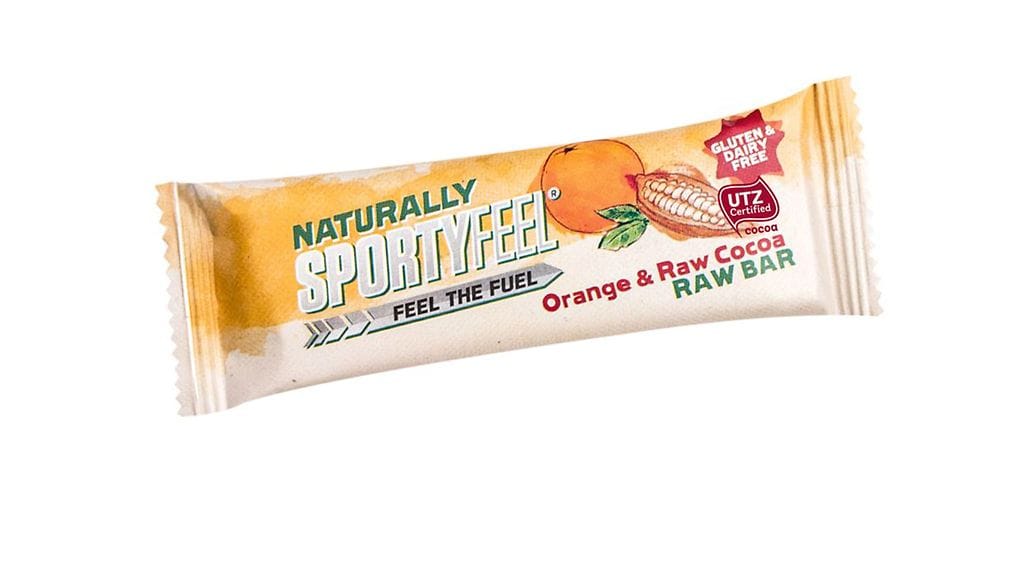 Tuote: Sportyfeel Naturally Raw Bar Orange & Raw Cocoa appelsiini-raakakaakaopatukka 40 g.