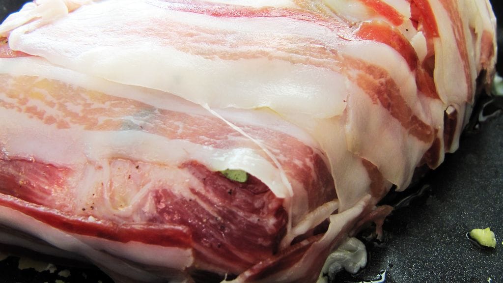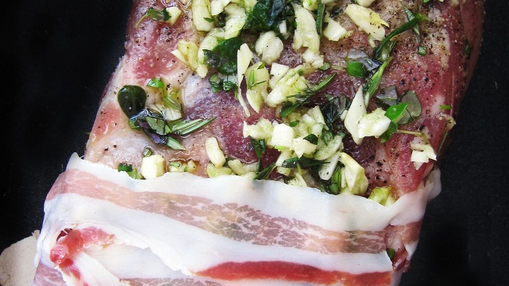 Kassler kuuluu lempparilihoihini ja kun se kääritään toiseen rasvaiseen lihaan ja annetaan hautua pitkään, on lopputuloksen pakko olla mainio. Pancetta on pekonia hienostuneempi valinta käärinliinaksi, mutta homma hoituu molemmilla, jos et satu italianherkkua löytämään.