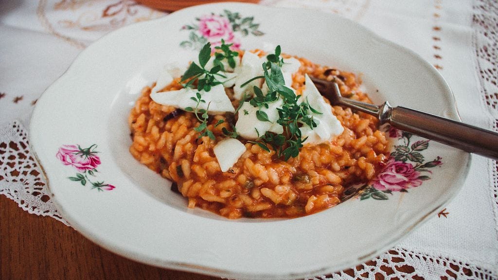 Tässä huikean maukas risotto, jossa on monta ulottuvuutta, joihin en ole risotoissa aiemmin törmännyt. Grillattu paprika tuo hedelmäisyyttä, sardellit tyylikästä suolaisuuta ja buffalomozzarella lempeää pyöreyttä.