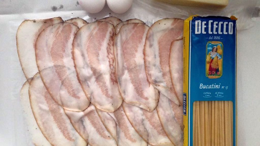 Ihka aidossa carbonarassa olisi guancialea, sian poskesta valmistettua suolattua lihaa, mutta kotimainen luomupekoni toimii tarpeeksi hyvin. Guancialea en ole Suomessa lihatiskeissä nähnyt. Suosi myös pancettaa, jota löytyy hyvien valikoimien kaupoista. Kokeile ja ihastu!