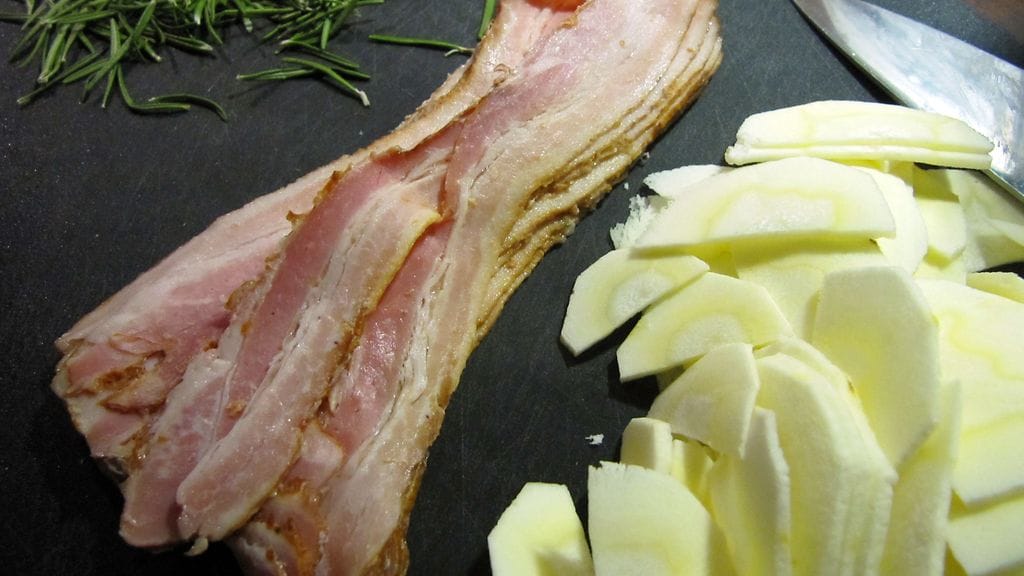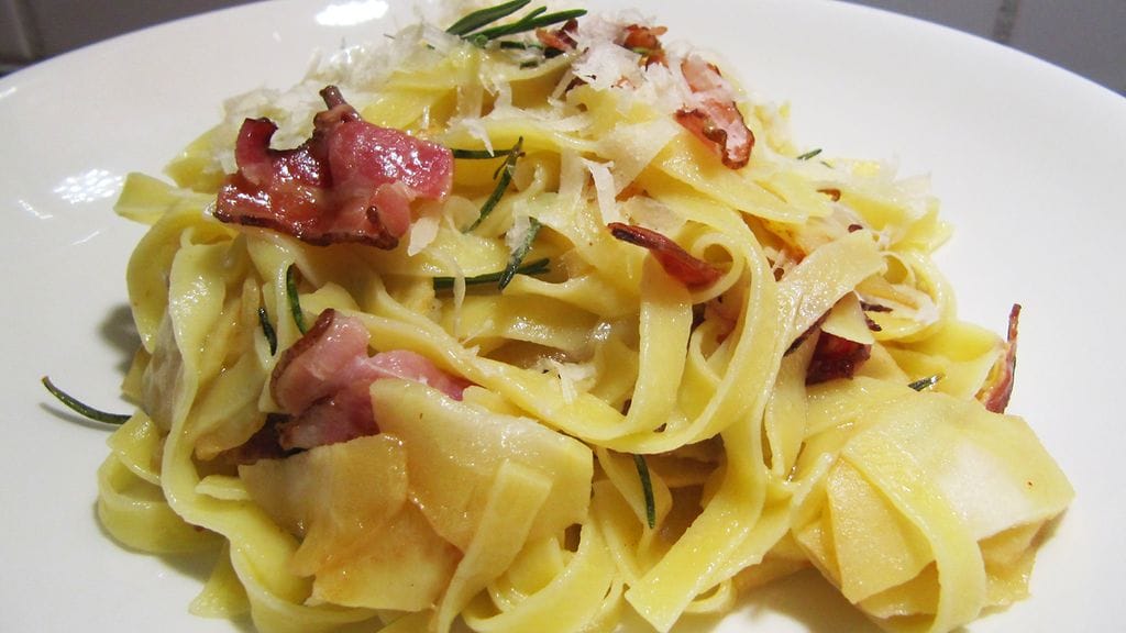 Spaghetti alla carbonara. Toinen roomalainen klassikko, jonka tarkempaan syntyhistoriaan liittyy muutama vaihtoehto. Miilunpolttajan pastana Suomessa tunnettu annos saattaa olla peräisin kaivostyöläisten suosikkiruoista, salaisen -yhteisön keittiöstä Italian yhdistymisen ajoilta tai sitten amerikkalaisten sotilaiden pekoni-muna -aamiaisen kaipuusta toisen maailmansodan aikana. Hiili tarkottaisi viimeisessä versiossa pastan päällä olevaa mustapippurirouhetta. Oli miten oli, tämän helpommaksi, yksikertaisemmaksi ja nopeammaksi ei pastan teko mene. Kaikki hoituu pastan keittoajan puitteissa. Tähänkin olisi (kuivattu possunposki) tai sitten omiaan, mutta pekoni on ihan ok. Koulukuntia löytyy tämänkin parista. Kerma on mielestäni tässä täysin turha ja munan pistän sekaan kokonaan, en pelkkiä keltuaisia.