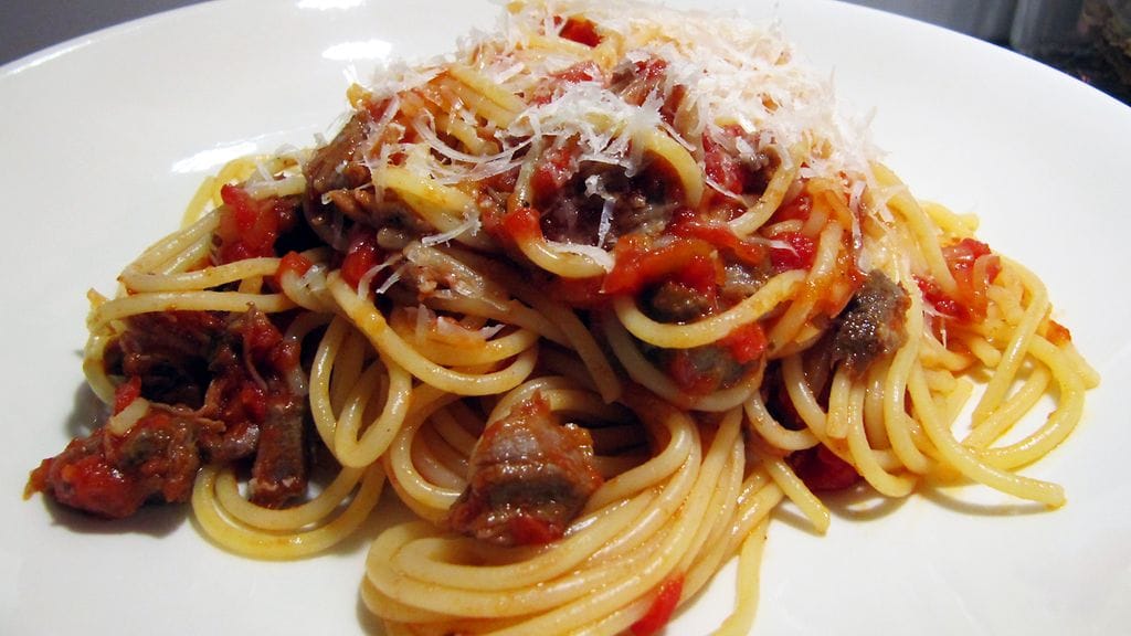 Bucatini all'amatriciana. Rooman lähellä olevasta Amatrice-kaupungista kotoisin oleva, alunperin ilman tomaattia tehty kastike, jonka roomalaiset tarjoilivat rosso eli tomaatin kera. Oikeaoppisesti guancialesta eli kuivatusta possunposkesta tehty soosi, mutta hankalan saatavuuden takia tehdään suomalaisittain pekonista. Bucatinia eli onttoa spaghettia löytyy myös harvasta paikasta, joten korvaa se tavallisella spaghettilla. Pecorino antaa hauskaa vivahdetta, mutta voit toki korvata senkin parmesaanilla.