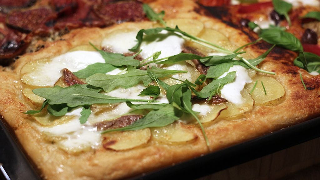 3) peruna-sardelli-rosmariini-parmesan (bianco eli ilman tomaattikastiketta, tsekkaa tarkempi ohje)