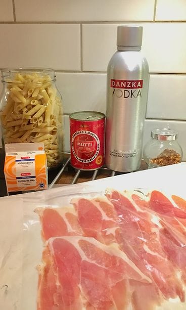 En likimain koskaan käytä pastassa kermaa. En likimain koskaan sekoita yhteen kermasoosia ja tomaattia. Lähtökohtaisesti se tekee kastikkeesta mössön, joka ei toimi niin kerman kuin tomaatinkaan suhteen. Tutustuin italialaiseen, järkeenkäyvään selitykseen, joka virkkoi ainesten erottuvan kastikkeessa toisistaan tomaatin hapon ansiosta. Mutta mikä sieltä tulee? Sieltä tulee vodka, osasten esiliina, joka toimii emulsio- eli yhdistymissiltana ainesten välillä.