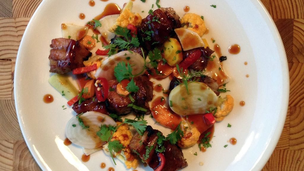 Tein illalliseksi kirjasta kolme annosta. Alkuun Kampasimpukat Kalifornia, avokadokreemiä ja soija-mirin -dressingiä. Päälle Pork Yaniniku, reseptissä tikutettua porsaankylkeä teriyaki-kastikkeella, mutta laitoin possun kuitenkin lautaselle niin ikään Gaijinin ohjeistamien pikkelöityjen kasvisten kera. Toimii myös dim sumien ja aasialaisten burgerien täytteeksi. Laitan nuo pari muuta reseptiä blogiin ihan pian. Jokainen näistä oli jumalaisen hyvää.