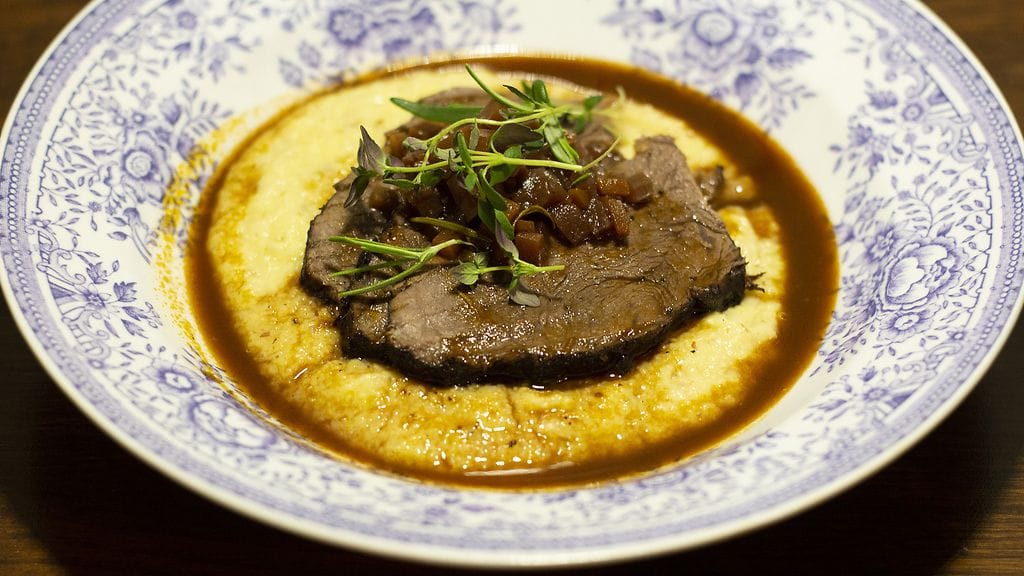 Höysteeksi käy loistavasti polenta kuten kuvassa, mutta voit tarjota oheen myös vaikka uunijuureksia, perunaa tai pastaa. Pelkkä rapeakuorinen maalaisleipäkin toimii erinomaisesti.