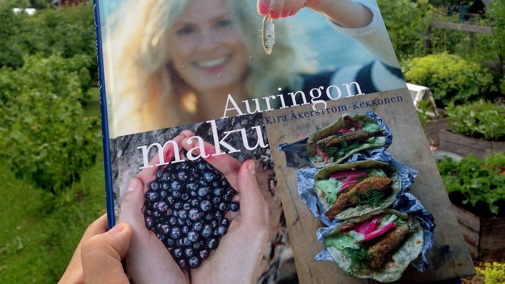 Kulunut vuosi on ollut melkoista keittokirjatykitystä. Mielenkiintoisia opuksia on tullut kauppojen hyllyille selkeästi enemmän kuin koskaan aiemmin. Myös moni ruokabloggaaja on lähtenyt kirjailijan tielle. Yksi mielenkiintoisimmista keittokirjauutuuksista tuli MasterChef-kisan voittaja Kira Åkerström-Kekkoselta. Auringon maku kuvaa hienosti kesäsesonkia täysillä hyödyntävää nidettä. Sain kirjan promokappaleen keväällä ja totesin siitä tulevan kesäsuosikkini. Ennen kasvukauden alkua siitä ei tosin huvittanut kokata mitään, mutta nyt, kun puutarhat, torit ja HeVi-osastot pursuavat kotimaista satoa, on kokeilunarvoisista resepteistä runsaudenpulaa.