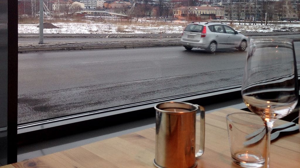 Sinne sijaitsee Porvoon Taidetehtaan kyljessä ja nautimmekin aperitiiviksi kierroksen kulttuurin parissa. Kannattaa ehdottomasti saapua paikalle puoli tuntia ennen pöytävarausta ja toimia samoin, mikäli paikka on auki. Ei edes maksa mitään.