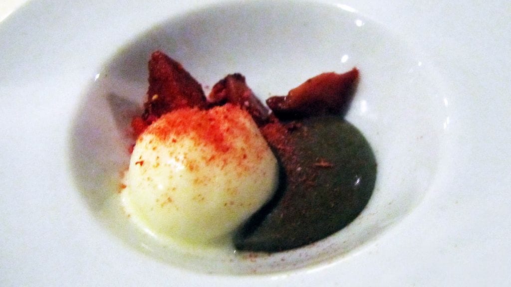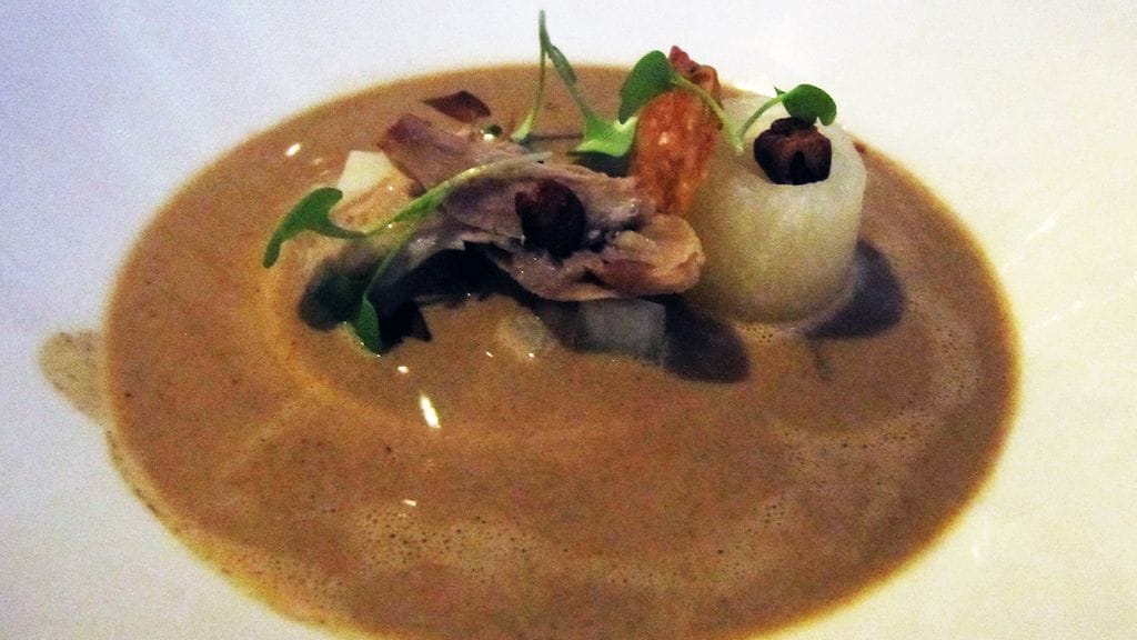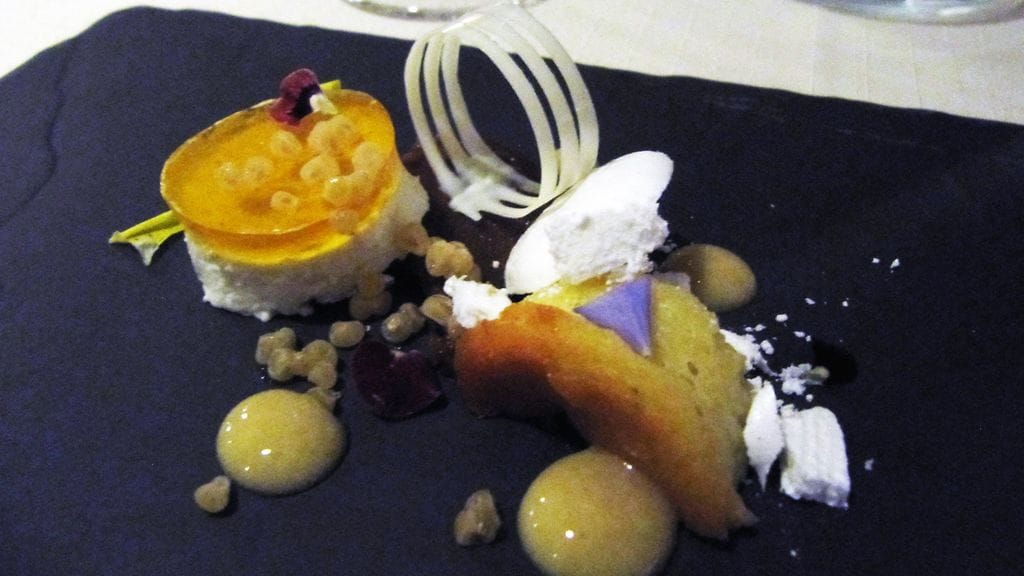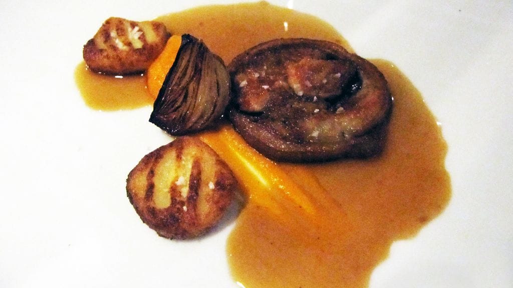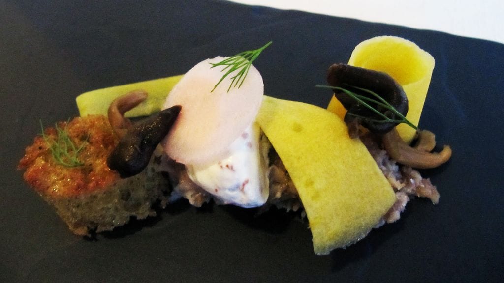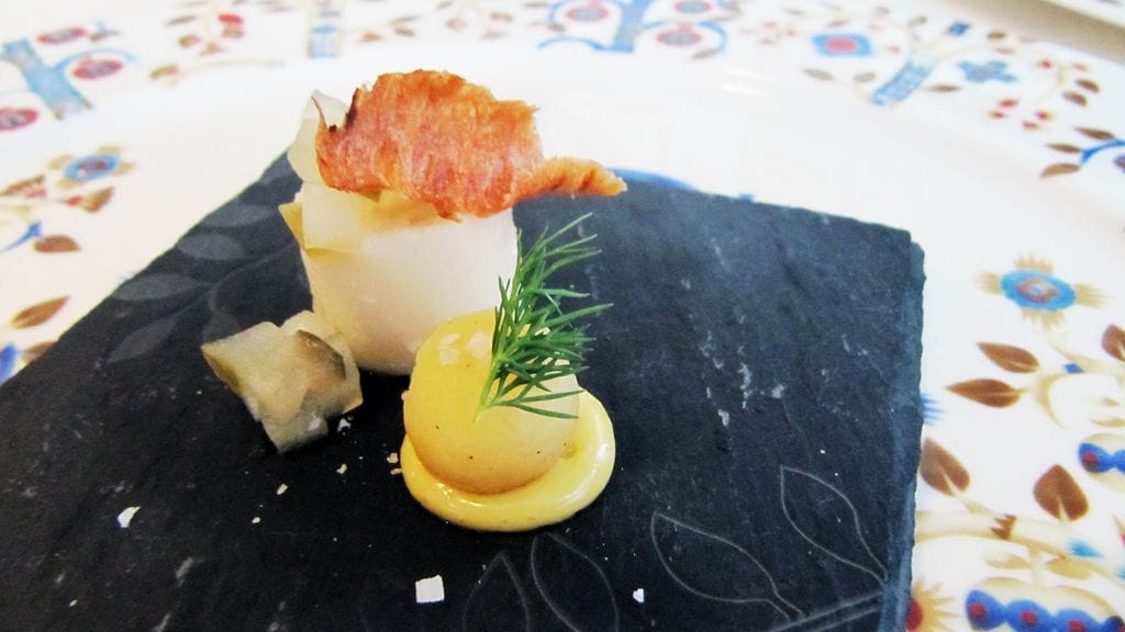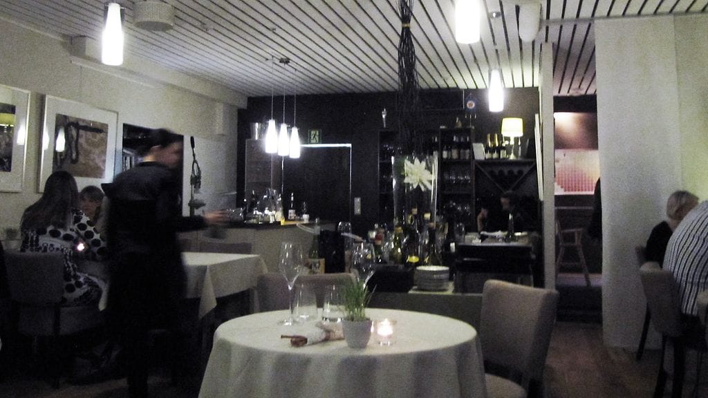 Vietimme vaimon kanssa vuosipäivää ja lahjaksi saatu illalliskortti täytti tehtävänsä mainiosti. Syötäväksi kärrättiin ravintolan pisin kokonaisuus, Menu C (90). Sen kanssa nautimme suositusviinit puolikkaina. Tuhdin lounaan jälkeen ruokahalua joutui hiukan herättelemään, mutta kun koko ajan aktiivinen ruokailu kestää 4,5 h, ehtii siinä alkupään ruokia jo sulatellakin. Tuloksena joka tapauksessa elämäni paras ähky.