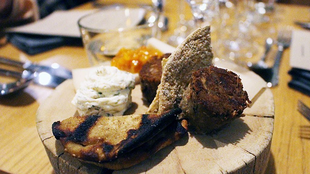 Alkunapostelupalat virittävät sisälle pohjoisen luonnon makumaailmaan. Meri-Lapin karitsa-rilletteä, kylmää savulohimoussea, yrttinäkkäriä, grillattua rieskaa koivulla, väinönputkella ja voikukalla maustettuna, manchegomaista Juustoportin Grand Reservaa ja lakkahilloa. Alkuskumpaksi mukavan kehittynyt, mutta raikkautensa säilyttänyt, paahteinen Juvé y Camps Reserva Familia Brut Nature Gran Reserva 2012.