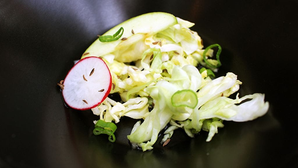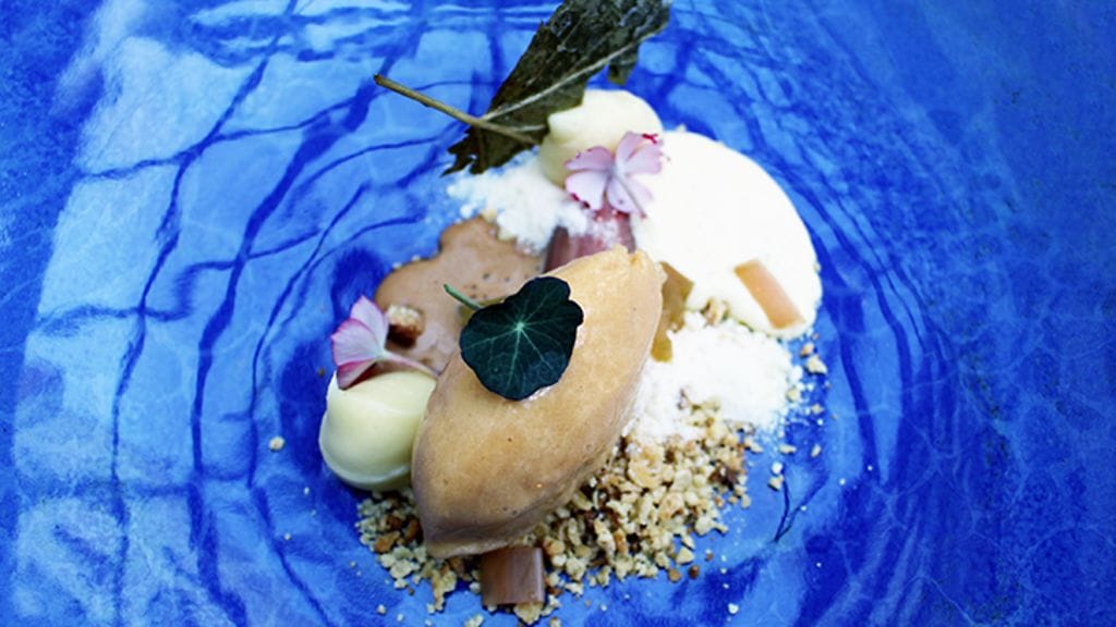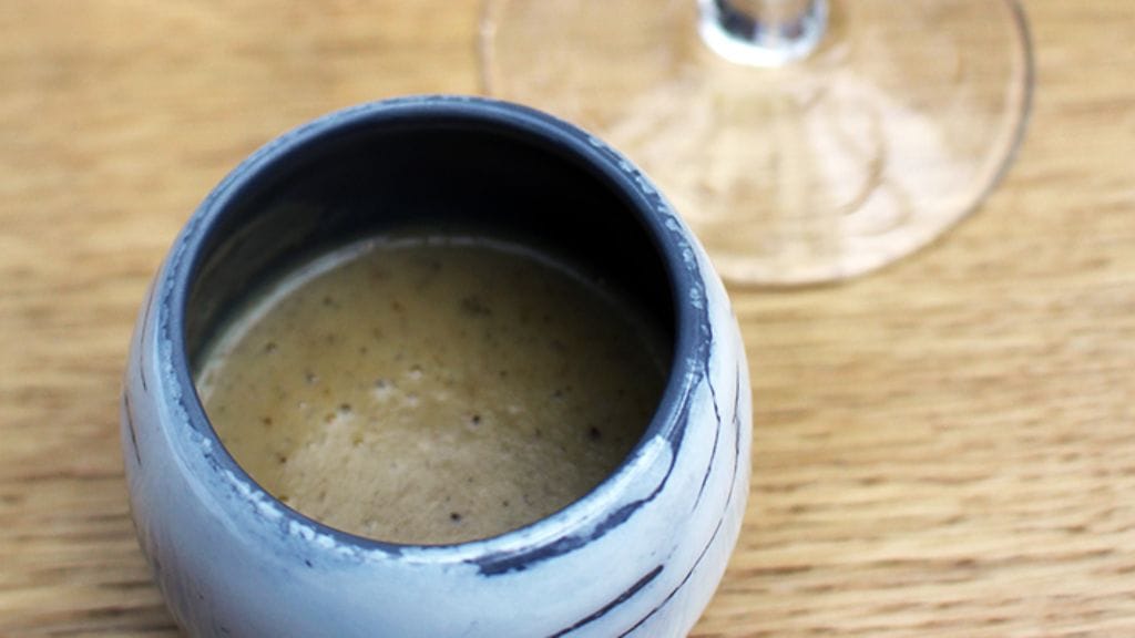 RUOKA. Keittiön tervehdyksenä saamme pikkukipon syvän- ja hyvänmakuista kukkakaalikeittoa. Sen pariksi Dittelsheim Riesling Kalkstein 2014, joka määritteli jo pitkälle talon linjan. Huikean mineraalisia ja varsin voimakkaita viinejä. Kolmantena kaikkiin maisteltuihin viineihin sopiva määre, raikkaus, joka puski sitruksen tukemana hienosti läpi tummasävytteisen kukkakaalikeiton.