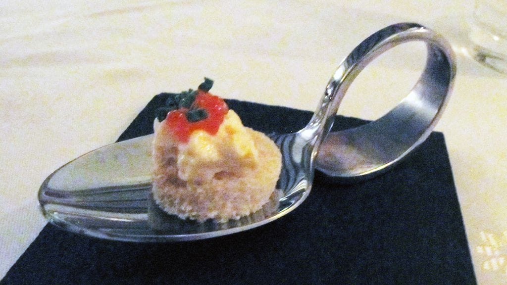 Kaninmaksa-annos oli maistuva ja tyylikkään yksinkertaisesti toteutettu. Mousse oli paistettu rapsakaksi ja maksanmaku oli siinä hienostuneempi. Merikrotti oli (maultaan) hieno aloitus illalliselle. Raikas makuhermojen herättelijä.