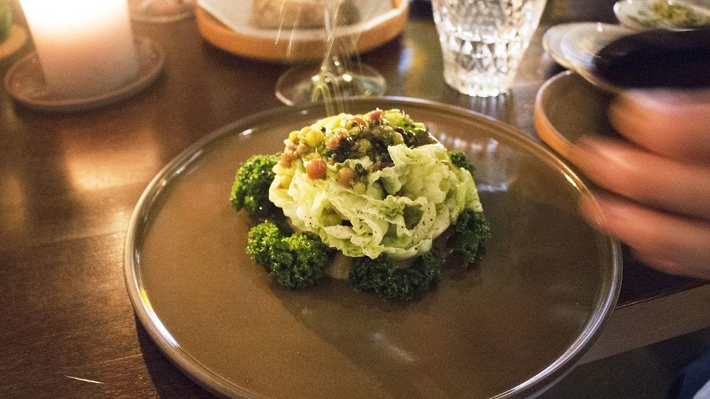 Olen pitänyt tämän vuosikymmenen fine diningin (lue: fiinimmän syömisen) kulkusuunnasta selkeämpään ruoanlaittoon ja makuihin. Nykyään hahmotan melko hyvin annoksen maut katsoessani lautasta. Maun tyyli on arvattava, mutta hienouden määrittää keittotaito. Grön tekee tässä poikkeuksen. Kaaliannoksen perusmaku oli jokseenkin arvattava, mutta sellaisenaan viety tappiin. Muiden annosten kohdalla ei tiennyt, mikä haarukallisessa odotti. Kaikki on esillä, mutta maku onnistuu yllättämään. Kiehtovaa.