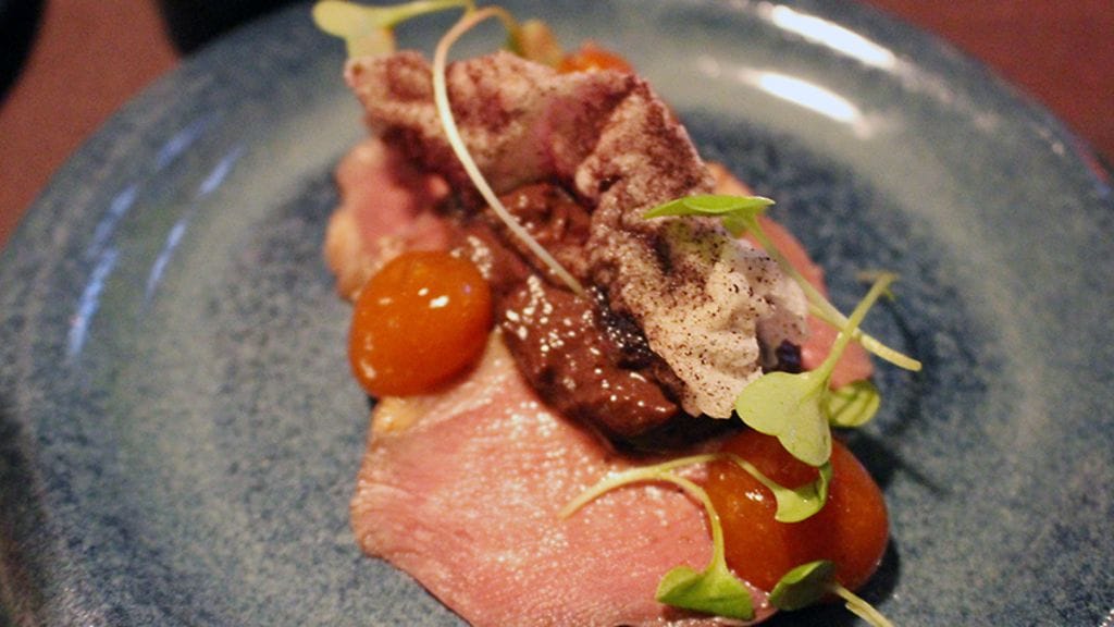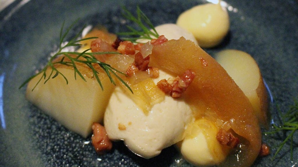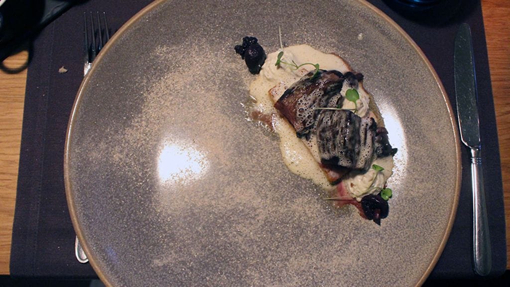 Yllättävän virkeästä mielialasta huolimatta en ollut lainkaan analysointituulella ruoan suhteen. Olin ollut sitä koko viikon. Halusin vain hyvää syötävää. Juuren sapasvalikoima (13,5 eur/hlö) oli siihen kuin mittatilaustyö. Näitä suomalaisia pikkuherkkuja kärrättiinkin pöytä täyteen. Ihan vain alkupaloiksi. Erittelemättä nyansseja vajaasta kymmenestä suupalasta, nousee päällimmäiseksi mieleen annosten tasalaatuisuus. Yksikään ei onnu, ei tosin häikäisekään. Kaikki ihan vain pirun hyviä. Tyytyväisyys hiipii mieleen. Juuri teki sen taas. Kun on päässyt luottoraflan asemaan, voi muuttuva suunta olla melkeinpä vain alaspäin. Status säilyy.