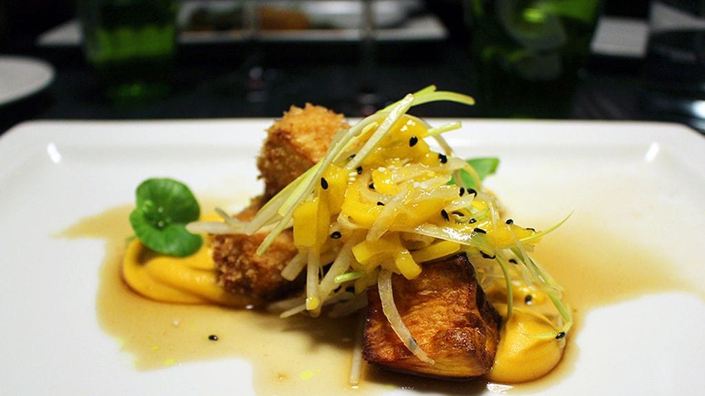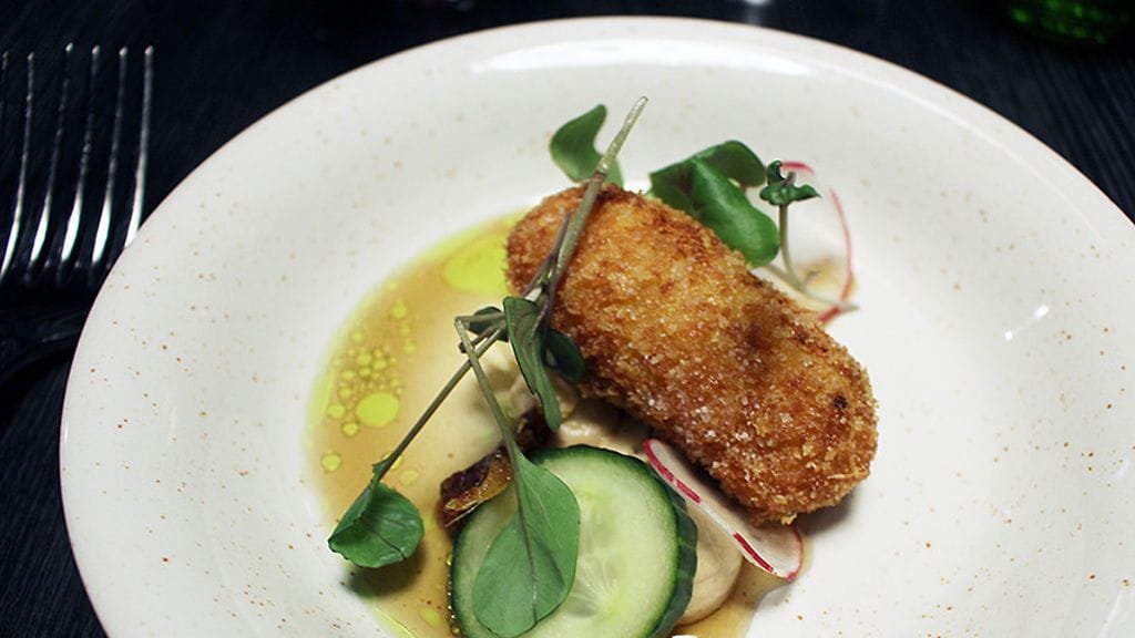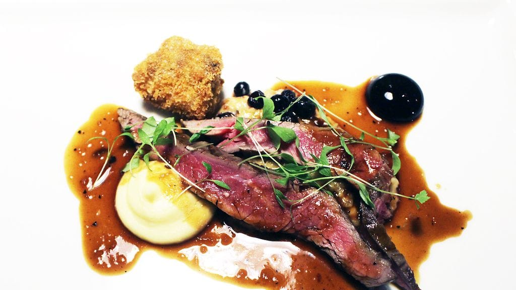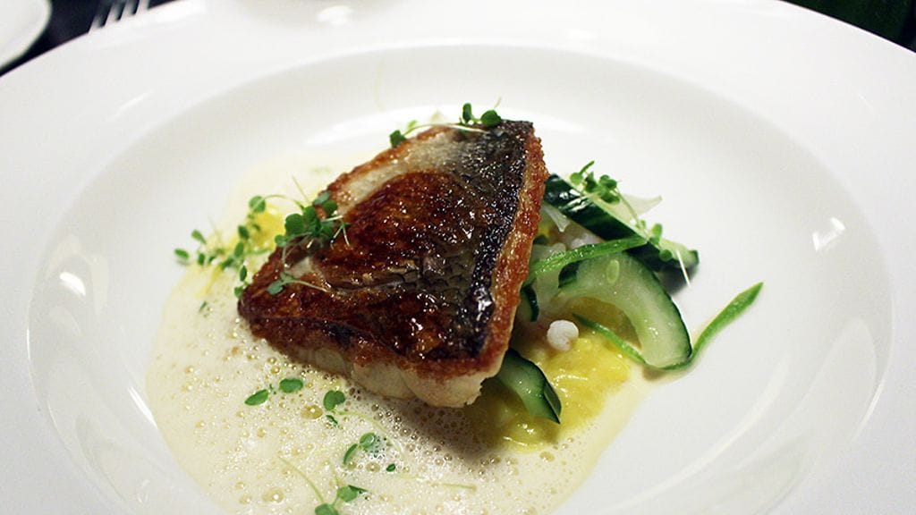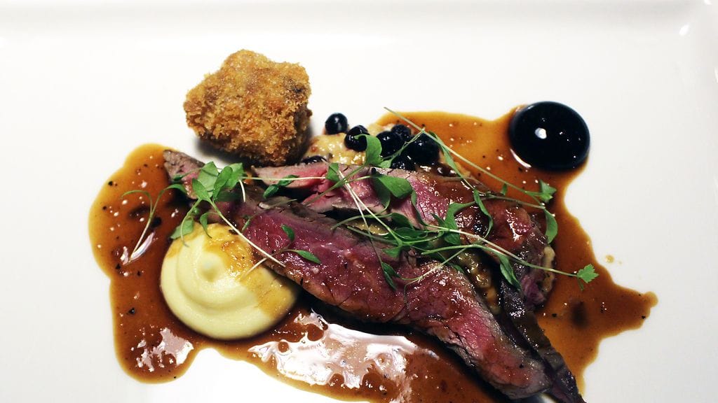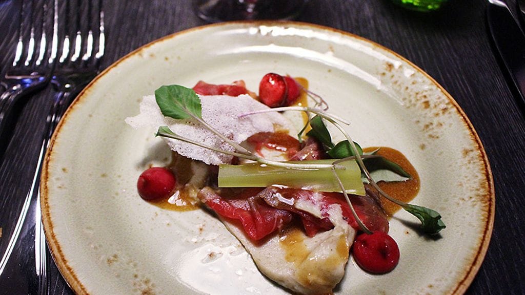 Klo 20.30 rafla oli täynnä vuotta 2017 vastaanottavia asiakkaita. Pöytäänohjauksen jälkeen meidät jätetään rauhaan vartiksi, mutta sen jälkeen palvelu soljuu mutkitta. Alkuun tyylikästä Palmer & Co Brut Resérve -shampanjaa. Tasapainoisen paahteinen ja hapokas viini täytyy pistää muistiin.
