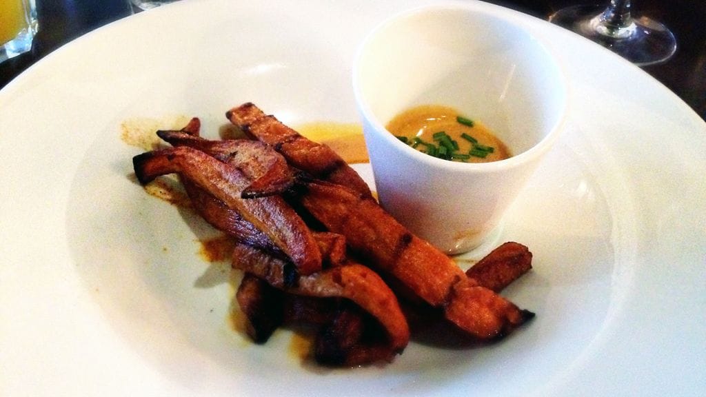 ALKUTAHDEILLA kuulen, että safka tehdään nyt alusta asti itse. Mietin, auttaisiko pään lujaa pöytään lyöminen nollaamaan kerrasta vanhat mielikuvat. Ehkäpä ruoka hoitaa homman siistimmin. Ensimmäiseksi meitä lämmitellään tuorepuristetusta appelsiinista ja jostain viinaksesta tehdyllä Fuzzy Navel -drinkillä. Tuore on aina tuore ja näillä leveysasteilla vastapuristettuun appelsiinidrinksuun törmää turhan harvoin.