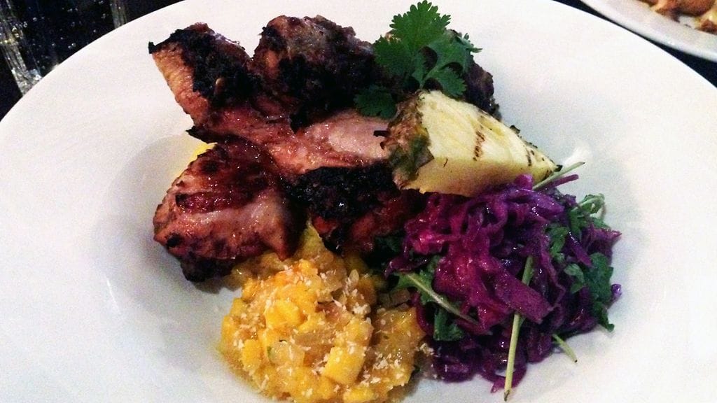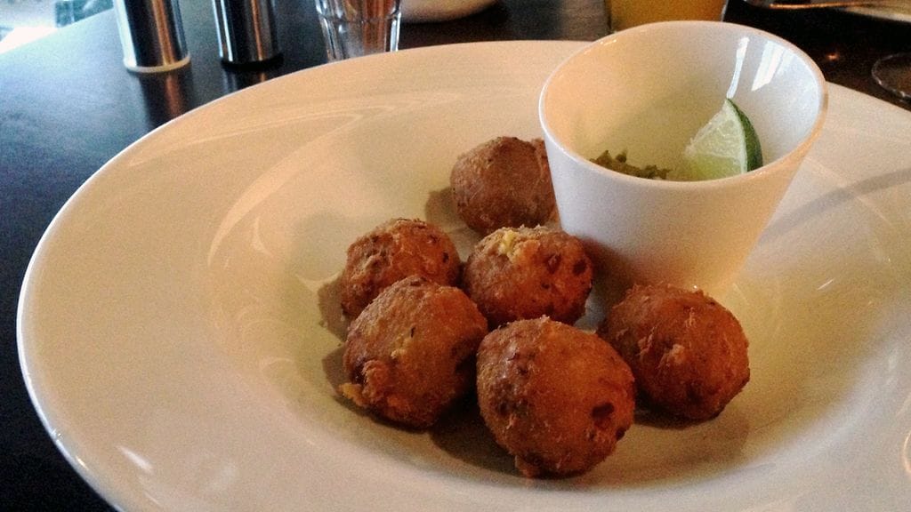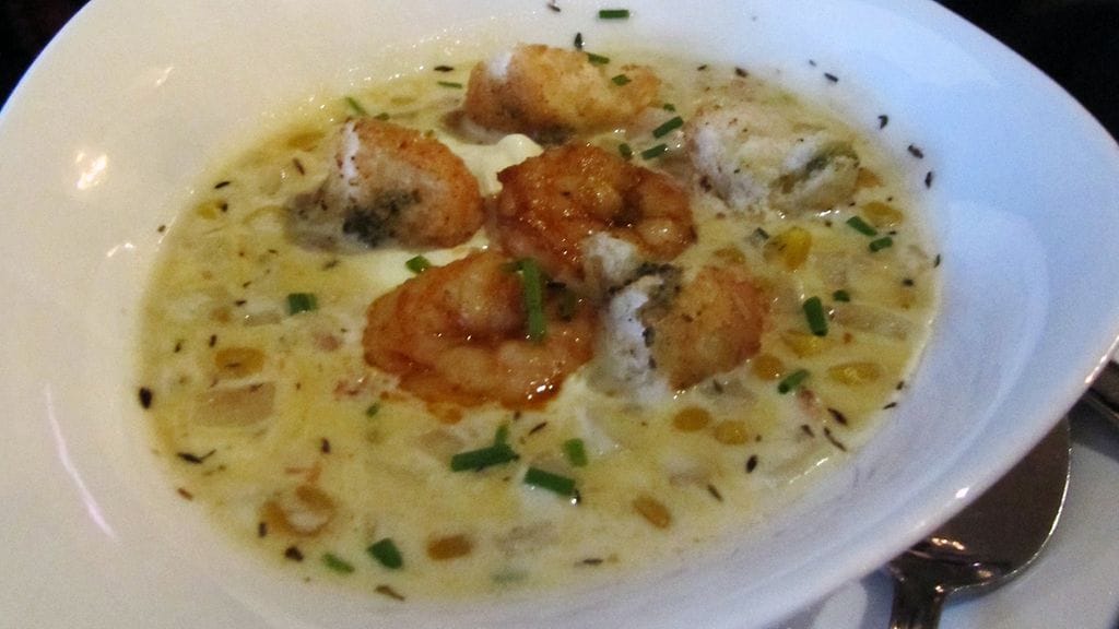 ASIAAN. Sitten saamme pöydän täyteen annoksia maisteltavaksi. Pickled Salad (8 eur) toimii tähän vuodenaikaan täydellisesti. Juuri sopivasti pikkelöidyt kasvikset cashew-pähkinöiden kera oli kerrassaan oiva aloitus. Turhan monta surkeaa alkusalaattia kaikkialla syöneenä en olisi tätä osannut itse tilata. Crab cakes eli friteeratut rapukakut (8 eur) ovat mukava naposteltava ja dipattava erityisesti oluen kylkeen. Makua tai twistiä voisi olla enemmän. Jos et ole rapukakkuja aiemmin maistanut, tästä on hyvä aloittaa. Grillatut ja maustetut bataatti”ranskalaiset” (5 eur) yhdistävät hyvin makean ja suolaisen. Rapeaksi näitä ei tunnu millään saavan. Kertokoon joku jipon, jos tietää (ilman extra-aineita kuten kuorrutusta). Mutta sitten tärähti. Syvän etelän mauista voimansa hakeva chowder-keitto kylmäsavulohesta, ravuista ja maissista (11/14 eur) paaluttaa paikkansa kaupungin toisena loistavana kalakeittona kauppahallin 4 vuodenajan kanssa. Täydellinen suola, voimakkaiden makujen seasta erottuvat raaka-aineet… tämän luokse palaan.