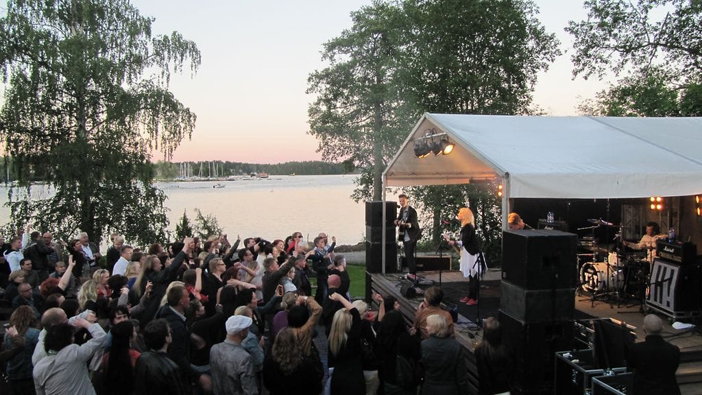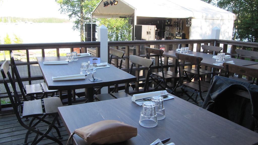 Tein pöytävarauksen edellisenä iltana ja tiedustelin samalla majoitusmahdollisuutta. Kaksi Huvilan parihuonetta varataan kuulemma jo kuukausia aikaisemmin. Kunhan yritin. Onneksi hotellihuone löytyi oopperajuhlien alla varsin täyteen buukatusta kesäkaupungista. Varauksen yhteydessä meitä kehotettiin tulemaan klo 19, koska klo 21 lavalla starttaava Haloo Helsinki! saattaa häiritä ruokailua. Niin se olisi tehnytkin. Burgeri ja rokkirymistely toimivat keskenään, mutta hienommat maut kaipaavat jonkinasteista ruokarauhaa.