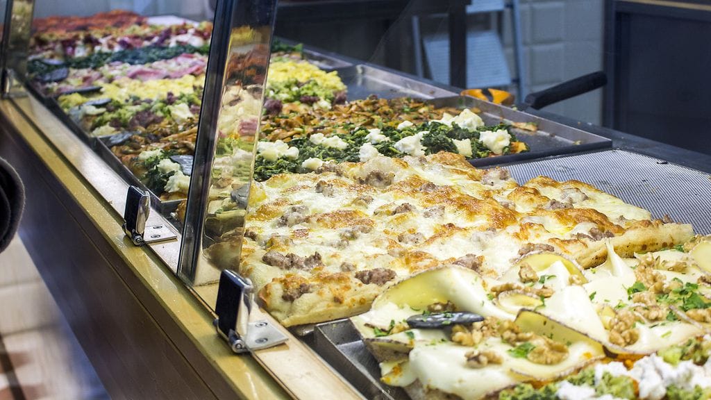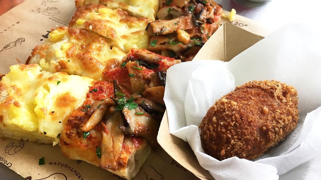 When in Rome… sun täytyy maistaa Gabriele Boncin levypizzaa. Viime kerralla en ehtinyt, vaikka oli viikko aikaa, mutta nyt onnistui. Vatikaanin takana, Pizzarium Bonci.