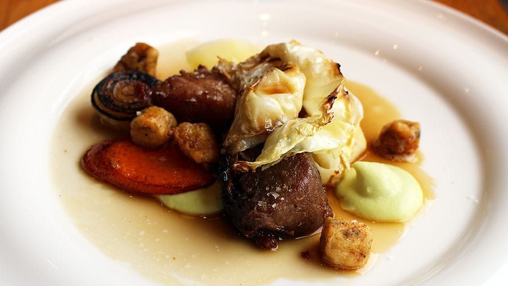 KALANSIEDÄTYSHANKKEENI pyrkii valitsemaan tasokkaissa paikoissa aina silakkaa, jos sitä on tarjolla. Perinteisesti kokattuna se ei edelleenkään liiemmin maistu, mutta taitavien kokkien käsistä olen saanut monta loistavaa makupalaa lautaselleni. Niin myös tällä kertaa. Mummonkurkkujen, kevyesti savustetun jogurtin, friteeratun mädin ja rapsakaksi paistetun taikinan kera tarjoiltu silakka-annos palautti mieleeni Berthan yllättävänkin vahvuuden makunystyröilläni, alkuruoat. Etikka oli vedetty sopivasti tappiin, silakka marinoitu juuri omaan makuun sopivaksi, frittimäti toi sävyä ja rapsakka taikina, no, rapsakkuutta. Kaikki balanssissa toisiaan nostaen. Illan paras annos. Puolikuiva kamppaili maukkaasti annoksen happojen kanssa. Vaimolle kaadettu näkemys kesäkeitosta nosti suupielet korviin ja alkuun podettu annoskateus hälveni. Niin tuttua, mutta silti niin erilaista. Rustiikkisuus päivittynyt pehmeän hienostuneeksi. in makuparimuistot eivät yltäneet kirjoitushetkeen asti.