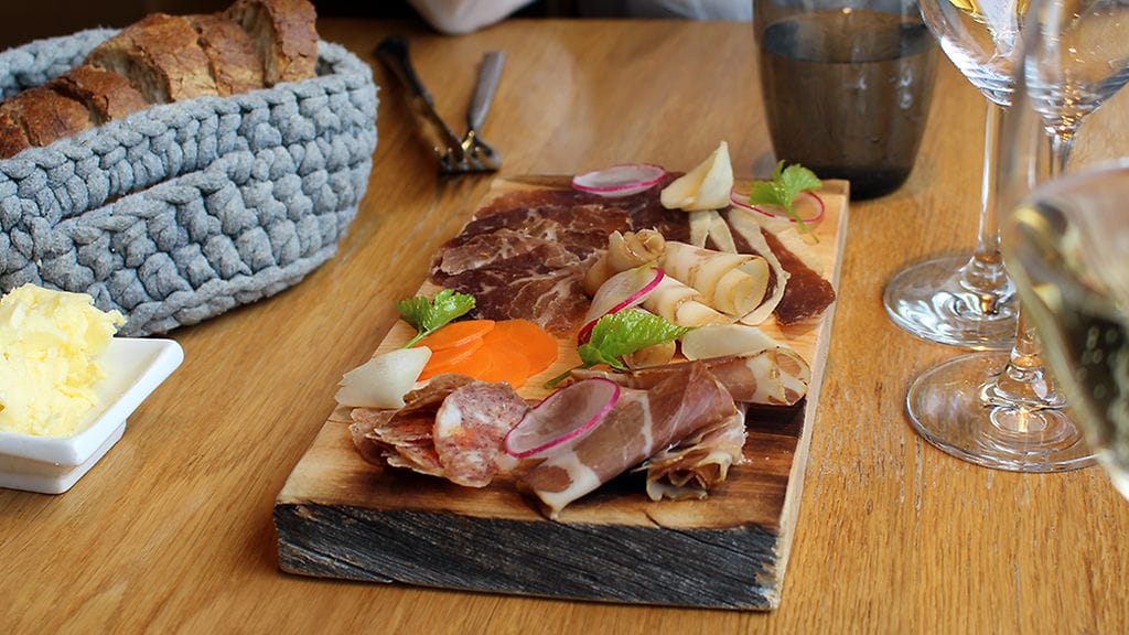 ALKUKUPLIKSI suositusviinipakettiin kuuluvan René Geoffroy Empreinte Brut Premier Cru 2008 -samppiksen omenaisen tyylikkäät aromit. Alkunaposteluun ”charcuterie” eli lautasellinen herkullisia leikkeleitä. Mm. lähitiloilla tuotettu possunniska ja -poski sekä hanhi vetävät hienosti vertoja eteläeurooppalasille lihalautasille. Suolaisten lihojen kanssa pärjäävän La Bota de Florpower #53 ”Mas Alla”:n kanssa nappialoitus.