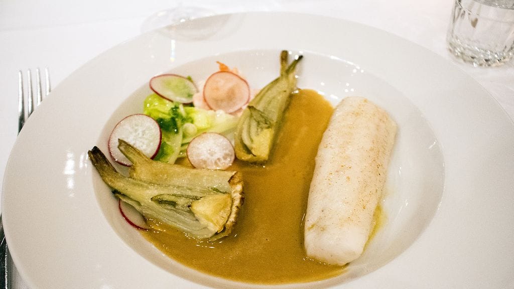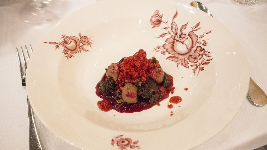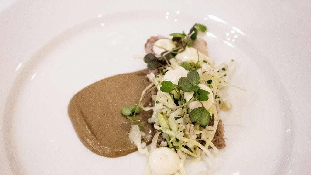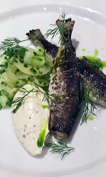 TERRIINI. Ruoaksi neljän annoksen menu (54 eur). Kylkeen suositusviinit (52 eur). Neloset aloitetaan maalaisterriinillä, jossa on mukana porsaankylkeä, ankkaa ja karitsaa. Höysteeksi herkkusienipyreetä, tryffelillä maustettua kastiketta ja kevätkaalia. Pehmeän rustiikkinen. Yhtä aikaa maukas ja helppo. Lasiin Henri Bourgeois Sancerre Les Baronnes Rouge. Kevyehkö ja karpaloinen Pinot saa tammituksesta mukavasti runkoa. Hapot taittavat annoksen rasvaa tyylikkäästi. En ollut varma, miten fiiniä ruokaa Vinkkeli tarjoaa, mutta tämä paljasti homman ainakin lähtevän fiinistä bistromeiningistä.