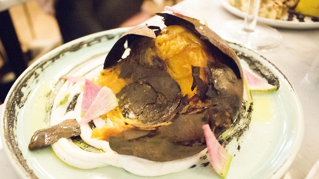 Vegaaninen viinilista vaikutti rennon trendikkääseen paikkaan oikein hyvältä, mutta kun saa tarjoilijaksi/sommelieriksi Chef & Sommelieristakin tutun Johan Borgarin, on parasta jakaa sekin valinta pois itseltä. Alkuruoille lasiin kaadetaan upean lempeän voimakasta Adegas Valmiñor Rías Baixas Davilaa, jonka tyylikäs hedelmäisyys ja mukavat hapot pärjäävät monenkirjavassa ruokaseurassa.