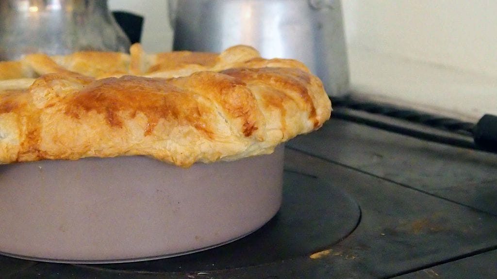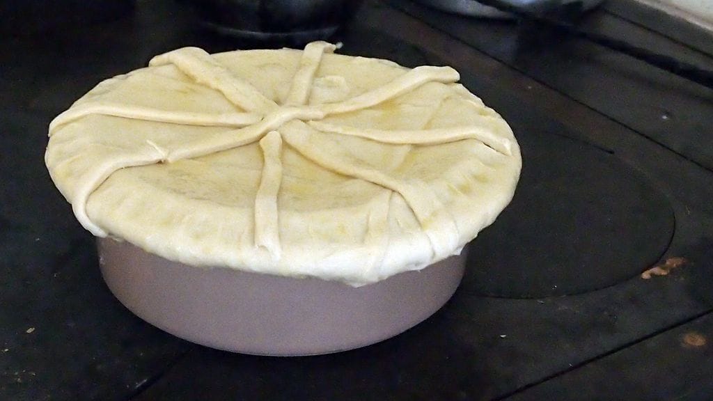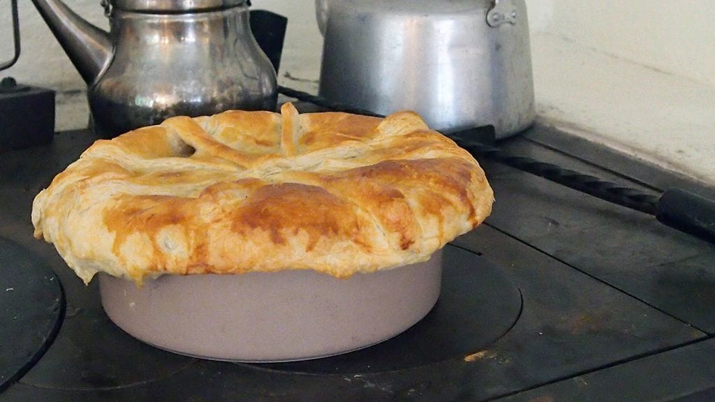 Olin syönyt jänistä aiemmin vain pari kertaa, mutta teereä en muista koskaan maistaneeni. Riistaruoan tekovastuu heitettiin meidän kontolle. Tutkailin hetken netin tarjontaa ja totesin, että brittipiiras sopisi tilanteeseen loistavasti. Muokkailin muutamaa reseptiä paremmin suomalaiseen makuun ja sesongin tarjontaan sopivaksi ja lopputuloksena syntyi maukas, metsän makuja huokuva, voitaikinalla peitelty lihapata. Katajanmarjat hain mökin pihan puusta.