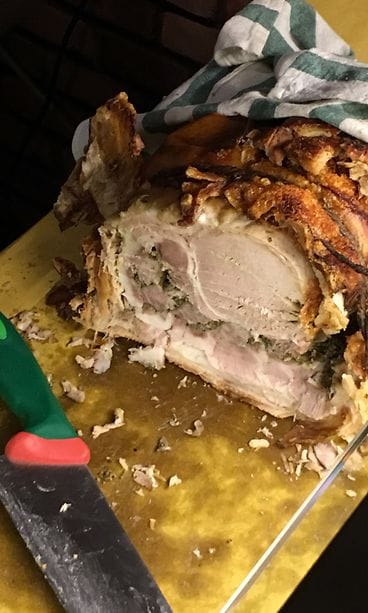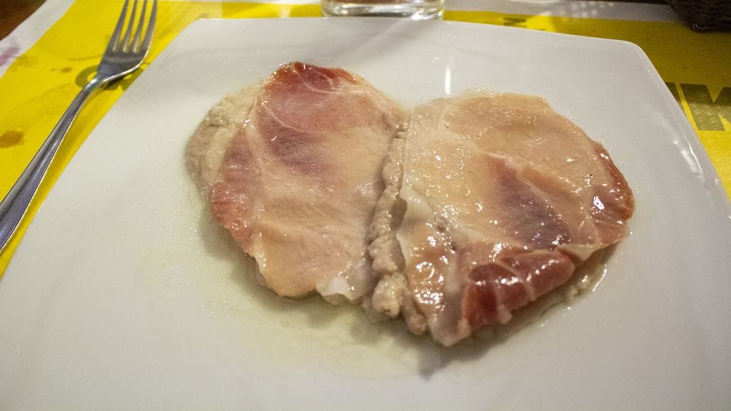 ANGRYPIG on melko huomaamaton paikka vilkkaan kadun sivukadulla. Puolenpäivän aikoihin syömässä oli pariskunnan lisäksi pieni japanilaisseurue. Seinät on tapetoitu tussilla kirjoitetuilla, ylistävillä asiakaspalautteilla. Mestassa työskenteli pari vanhempaa herrasmiestä, jotka olivat kuin repäisty Sopranosista. Erittäin mukavia ja rentoja tyyppejä. Halusin maistaa vain porchettaa, mutta toisaalta myös paninia. Siispä porchettalla ja uunitomaatilla täytetty panini sekä käsityöläisolut. Hinnaksi 9,50. Paninissa ei ole varsinaista kostuketta, mutta kaikki toimii täydellisesti. Ei ollut varsinaisesti nälkä, mutta leipä upposi sisuksiin helposti. Porchetta näyttää kuivalta kuin joulukinkku, mutta sen mehevyys on lopulta samaa tasoa kuin kinkku parhaimmillaan. Rapsakaksi paahdettu leipä tuntuu aluksi kuivalta, mutta kun koko haukku on suussa, maku on upea. Näin kuivan oloisen ja yksinkertaisen ei pitäisi maistua näin hyvältä, mutta maistuu. Iso suositus. Porchettaa voi maistaa myös juustojen kanssa pienempänä hiukopalana.