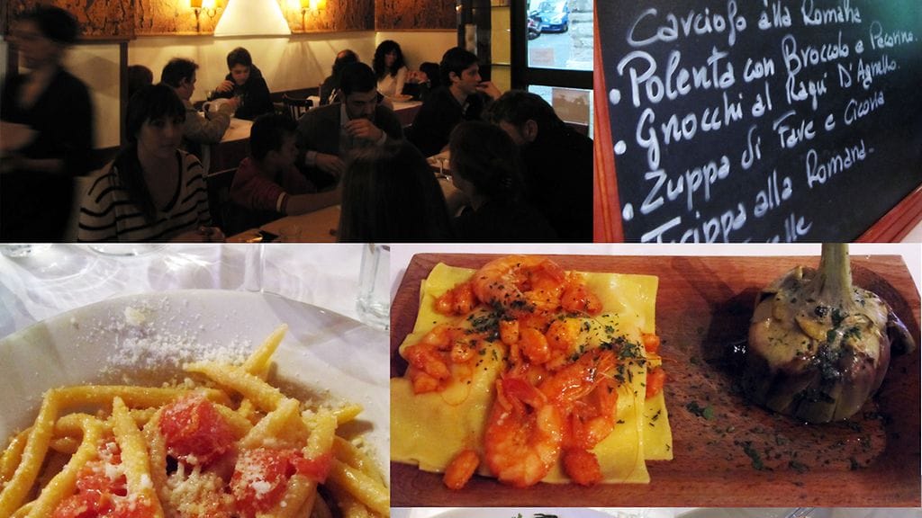Olin tehnyt jossain määrin esitutkintaa Rooman ravintoloista, koska olin aiemmissa reissuissa tympääntynyt liki jokaiseen sattumankaupalla valittuun raflaan. Ärsyttää maksaa 80 euroa keskinkertaisesta ruoasta, kun samalla rahalla voisi Italiassa saada huikean hyvääkin.