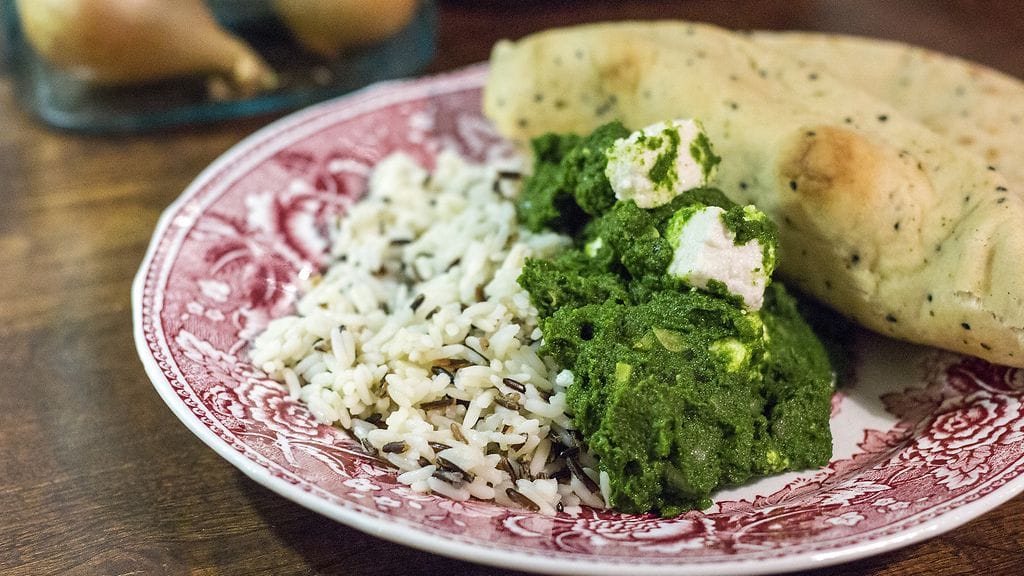 Saag Paneer on maailmanmaineeseen noussut herkku Intian ja Pakistanin rajalla sijaitsevalta Punjabin alueelta. Lyhyesti selitettynä se pinaattinen juustoruoka kastikkeella. Tein pinaattikastikkeesta runsaamman lisäämällä siihen parsakaalia. Mahtavan mieto, mutta maukas kasvisruoka! Nautitaan perinteisesti naan-leivän kanssa, mutta lisäsin annokseen myös pitkäjyväistä riisiä. Herkku aiheutti sen verran (ki)innostusta Facebookissa, että päätin rustailla reseptin tänne.