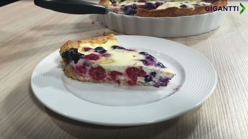 Valkosuklaa sopii oivasti marjapiirakkaan. Tällä reseptillä valmistuu perinteinen marjapiirakka, jonka täyte tehdään kermaviiliin.