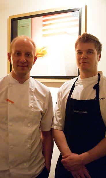 Ravintolassa oli iltakahdeksalta vielä pari pöytää tyhjänä. Ilmeisesti sana tv:stäkin tutusta kokista ei ollut kiirinyt tarpeeksi. Itse odotin Laukkosen makuja suurella mielenkiinnolla. Villiyrttejä ja lähellä tuotettuja aineksia suosiva Makuja-kokki, joka arvostaa raaka-aineiden omaa makua eikä kikkaile turhia, on juuri sitä, mitä arvostan eniten.