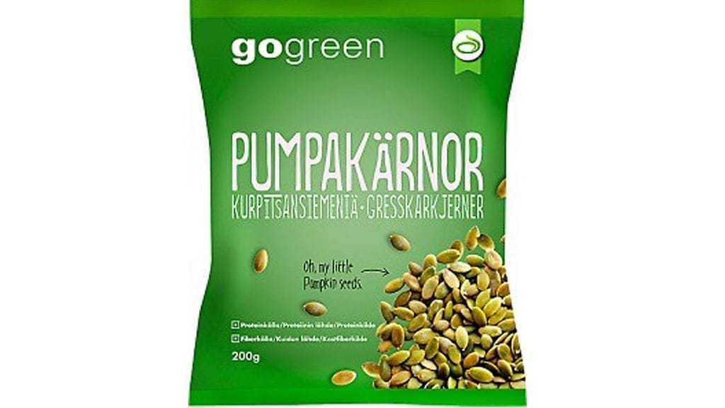 Lantmännen Cerealia AB ilmoittaa vetävänsä myynnistä kaksi erää kuivattuja kurpitsansiemeniä, joiden alkuperämaa on Kiina. Kyseessä on tuote nimeltä GoGreen Kurpitsansiemeniä.