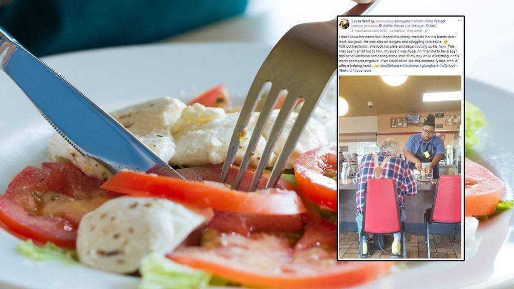 Teksasilainen Evoni Williams, 18, oli työvuorossa Waffle House -ravintolassa, kun vanhempi miesasiakas tarvitsi hänen apuaan. Nuori ravintolatyöntekijä osoittikin, kuinka pienellä eleellä voi olla suuri vaikutus.