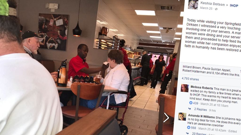 Thomasin uskomaton asenne on sulattanut sydämiä kaikkialla: miehestä tuli sosiaalisen median kuuluisuus, kun hän uhrasi omaa aikaansa auttaakseen asiakastaan syömään.
