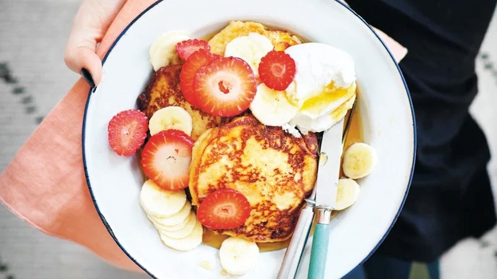Rahka-banaanipannarit ovat terveellisempi herkkuvaihtoehto – joka sisältää runsaasti proteiinia. Pannareiden kanssa tarjoiltavaksi sopivat banaani, marjat sekä turkkilainen jogurtti. Aikuisten annokseen voi lisätä myös lorauksen vaahterasiirappia.