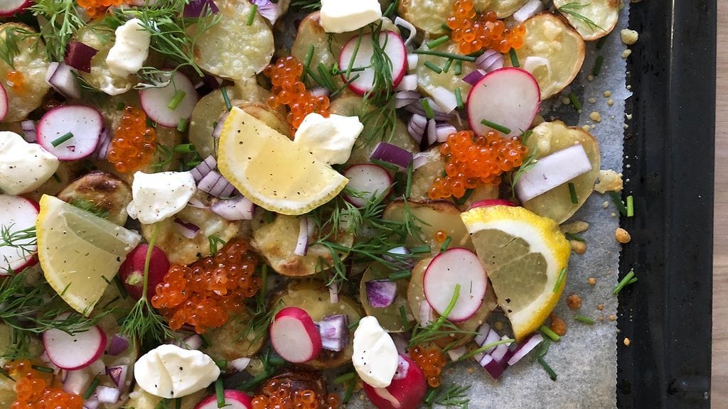 Julia Tuvessonin Vuokaruoka-kirjassa (Atena 2019) valmistetaan uunissa rentoa ja herkullista kasvisruokaa. Yksi Julian omista suosikeista valmistuu varhaisperunoista.