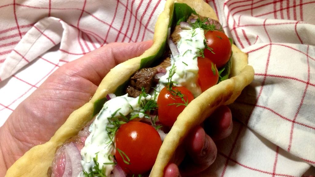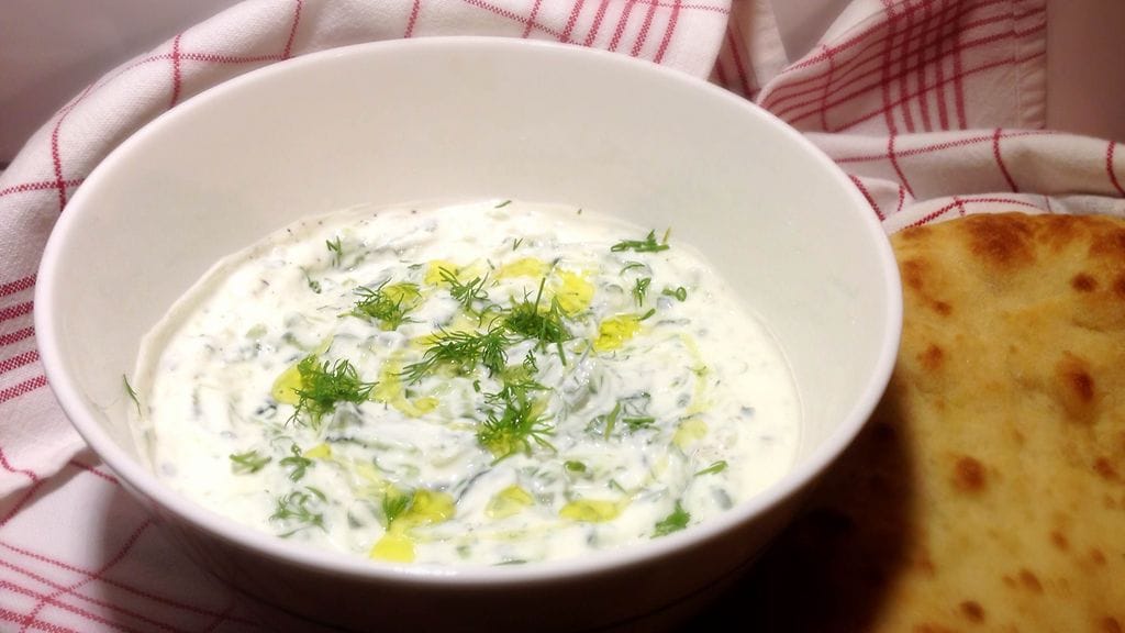 Rakastan kolmea soossia. Aiolia, hummusta ja tzatzikia. Voisin syödä jokaista vaikka joka päivä. Raikkain niistä on tzatziki, jota ilman ei kesäistä kreikkalaista ateriaa voi syödä. Se toimii vaikka minkä kanssa ja on kaiken lisäksi terveellistä. Lihan, kalan, kanan, leivän, salaatin, sipsien… On käsittämätöntä, miten harvoin sitä silti teen. Täytyy yrittää tsempata. Tällä kertaa se mehevöitti naanleipään käärittyä karitsa-gyrosta.