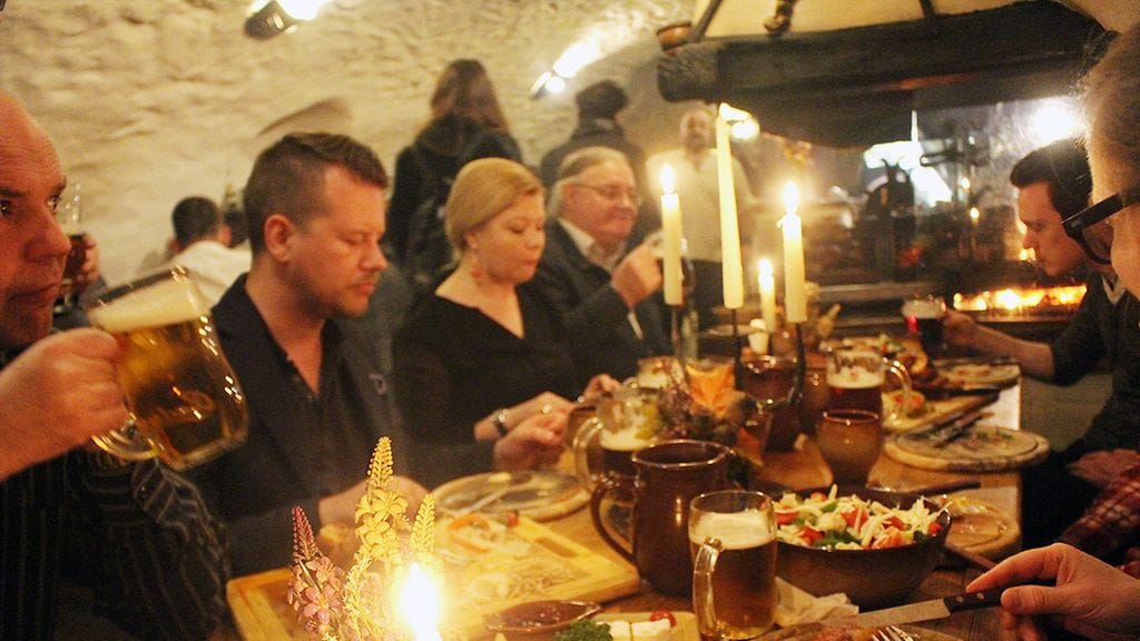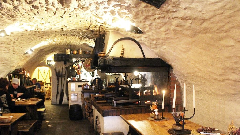 ILLALLINEN nautittiin valloittavassa, vanhaan vankityrmään tehdyssä ravintolassa, Krčma Šatlavassa (älä kysy lausumisesta). Paljon on ravintoloita nähty, mutta tämä sykähdytti. Keskellä kellarimaista tilaa sijaitseva avotuligrilli sihisee täynnä lihaa. Ronski grillaajakokki iskee läskit puisille lautasille ja tuo pöytään.